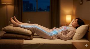眠りにつく前には、ベッドの上で足の裏を合わせる「カエル足のポーズ」で股関節を解放し、最後に仰向けになって「みぞおち」の上に両手をそっと重ねます。手の温もりを感じながら深呼吸を繰り返せば、心も体も深い安心感に包まれます。